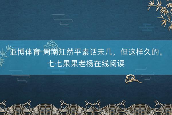 书名:野王弟弟今天也在峡谷乱杀 主角:周南江,七七,果果,老杨 简介:并且咱们也钦慕,这个“又乖又强”还只吃泡面的奥秘野王,到底长什么样。 亚搏体育官方网站 - YABO “必须面基!”果果两眼放光,“万一是个帅哥呢?” 可当咱们提到碰头时,他却顾傍边而言他。 ?本领到了,我得下了。】 ?姐姐们再会。】 这一句再会,即是整整两个月的失联。 发布于:广东省......