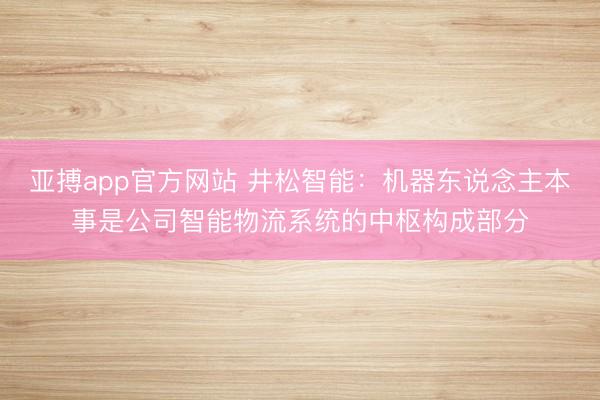 证券日报网讯 2月11日,井松智能在互动平台回报投资者发问时示意,机器东说念主本事是公司智能物流系统的中枢构成部分。井松智能深耕智能制造行业多年,公司弥远坚捏改进发展政策,喜爱研发插足,坚捏智能仓储物流系统中枢建树自研自产。进程多年的发展,公司积贮了一系列先进的本事,大类包括:AGV车载截止系统本事、堆垛机结构筹算本事、穿梭车结构筹算本事、分拣截止本事、无东说念主搬运机器东说念主高性能中枢截止器、仓储物流感知软件平台、井松物联网云平台等中枢本事。公司已班师达成了从自主挪动机器......