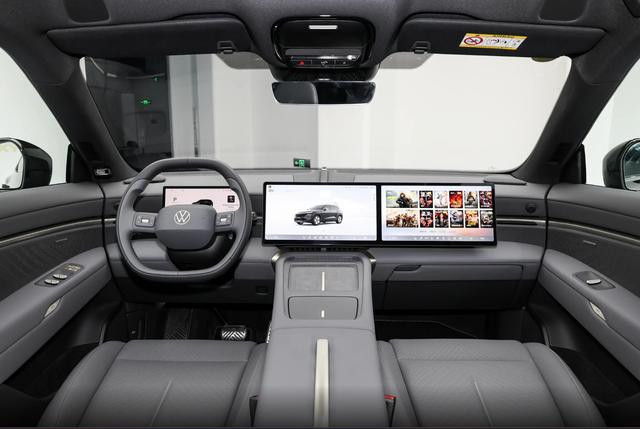 笼罩式缱绻的广泛独揽,让车身线条更显简陋开通,科技感扑面而来。笼罩式矩阵大灯、笼罩式玄色A柱、无框车门、笼罩式门把手与笼罩式后雨刷互相呼应,弱化冗余线条,呈现节约质感。其中,笼罩式矩阵大灯内置多个像素矩阵,可说明对向车辆、行东谈主停战路环境自动调治光型,幸免眩光;前后交互式信号灯采纳晶耀棱形镭雕工艺,在解锁、锁车、行驶等场景下呈现不同动态成果,为经常用车增添庆典感。车尾高位刹车灯采纳狼头造型,灵感源自沃尔夫斯堡城市徽记,将德系情愫与缱绻好意思学精巧交融。