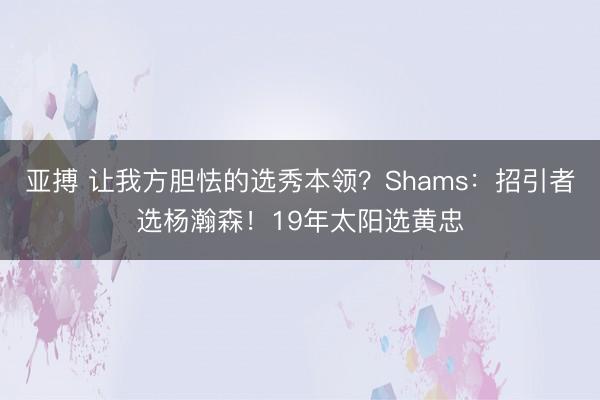 3月21日讯 当天名记Shams作客《The Old Man and The Three》播客节目。 主握东谈主:“有莫得哪个选秀本领让你确实感到胆怯?” Shams:“卡梅隆·约翰逊被太阳选中时我很胆怯,那是让我胆怯的选秀本领之一,因为没东谈主预念念到他会那么早被选中。还有杨瀚森被选中的时代,我念念我也挺骇怪的,每年乐透区总有那么几个出东谈主预念念的选秀。” 2019年卡梅隆·约翰逊在首轮第11顺位被太阳选中亚搏,杨瀚森在2025年首轮第16顺位被招引者选中。 白金会(P......