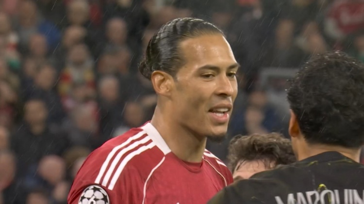 4月15日讯 利物浦vs巴黎上半场亚博体育,开云体育官方网站首页范戴克门前补射被马尔基尼奥斯极限铲球封堵,亚博app起死后范戴克对同业点头奖饰,口型似乎在说“That's nice!”