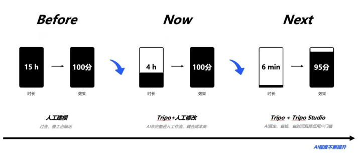 面前咱们的3D生奏遵守照旧靠拢专科建模师水平,改日游戏行业会出现大宗一东说念主公司。哪怕只是个谋划,只须会用AI编码用具,搭配Tripo就能作念出游戏Demo,凭Demo去融资、找刊行、组建团队。