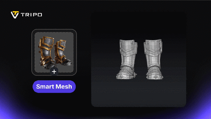 第二个要紧阐扬,是Smart Mesh(Tripo P1.0)。行业里都知说念,高模要放进游戏里使用,必须作念减面处理,而减面、拓扑结构规整化,一直是游戏分娩管线里的核肉痛点。