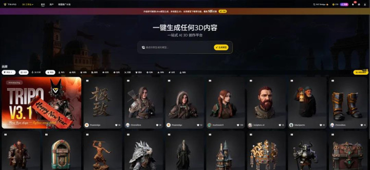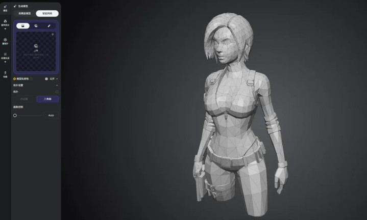 输入一句通俗的prompt,或者上传一张图片,2秒就能生成一个拓扑规整、布线合理的5000面游戏模子。