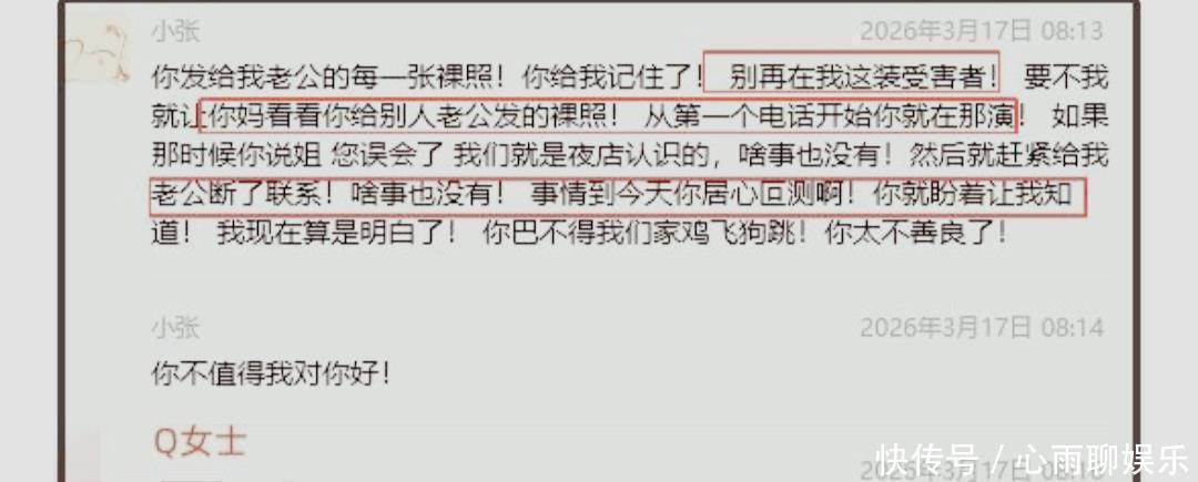 Q女士对此威迫并不怕惧,直言让对方恣意发送。