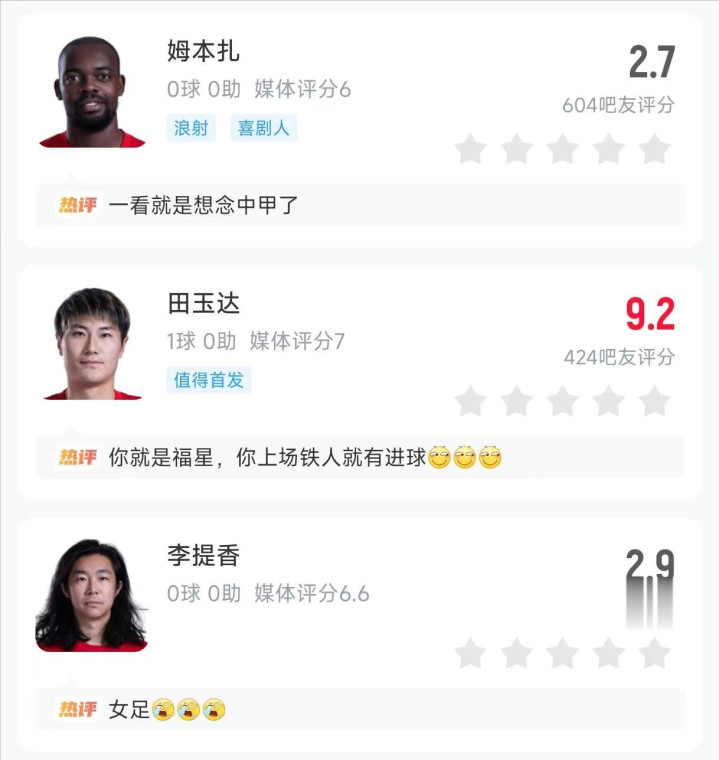 可见,李金羽对锋线球员的弘扬亦然荒谬动怒,而这场1-3的比赛,亦然犹如一块试金石,揪出了辽宁铁东说念主队内三名水货球员,最初即是姆本扎,他在本场比赛出战59分钟,亚搏app官方网站一共有7脚射门4次射正球门方针,却莫得获得一粒进球,这也让姆本扎成为全场最差,只是得到2.7分。