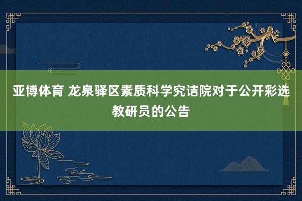 因职责需要,龙泉驿区素质科学究诘院(以下简称“区教科院”)凭证《成齐经开区素质局、成齐市龙泉驿区素质局对于龙泉驿区素质科学究诘院教科研东谈主才彩选宗旨》(成经开教办〔2019〕15号),面向全区在编在岗西席公开彩选教研员。现将筹谋事宜安排公告如下。 一、 彩选对象 全区公办中小学(幼儿园)在编在岗东谈主员。 二、 彩选岗亭及条款 {jz:field.toptypename/} 本次公开彩选东谈主工智能素质教研员1名、学校贬责教研员1名、高中物理教研员1名、高中政事教研员1名、......